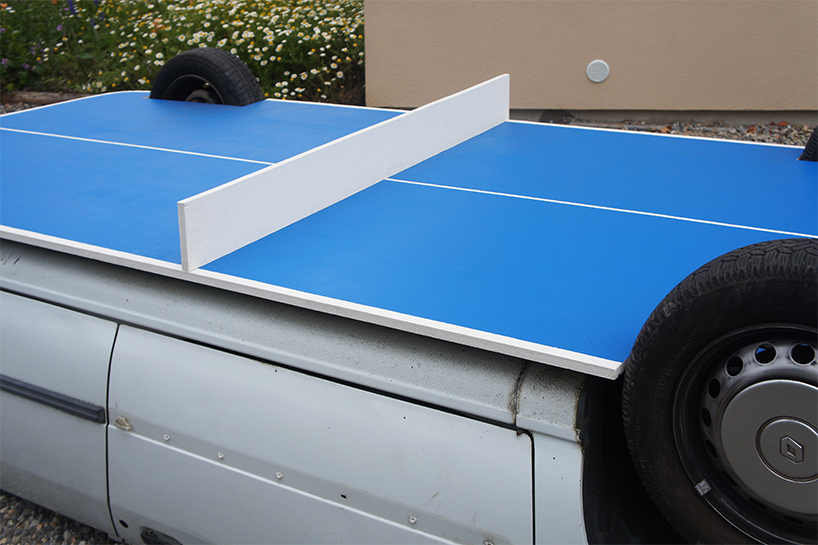 Umjetnik Bendetto Bufalino postavio je sto za stoni tenis napravljen od starog automobila u dvorište galerije za savremenu vizuelnu umjetnost Maison Salvan u francuskom gradu Labege.