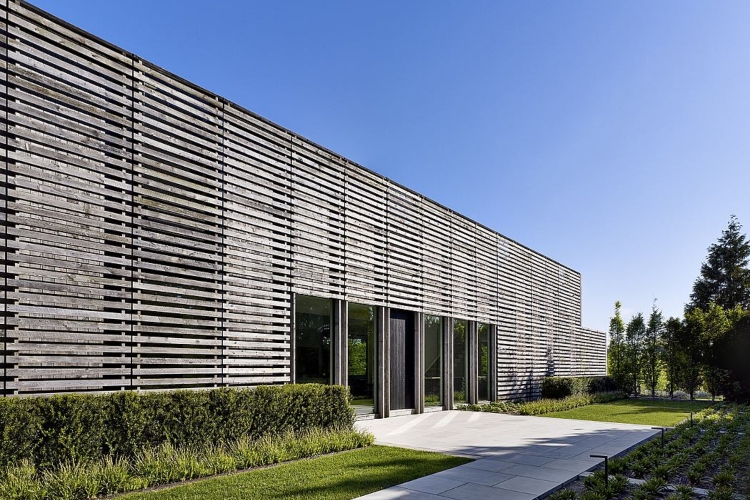Jedinstveni spoljašnji materijal – obloge od istrošenog drveta – odražavaju bezvremensku patinu koja podsjeća na štale i pomoćne zgrade u ruralnim predjelima. Reciklirano drvo, geotermalno grijanje i hlađenje, poliuretanska izolacija, mehanički sistem svježeg vazduha i izolovani prozori visoke efikasnosti doprinose ne samo dizajnu, već i održivosti kuće.