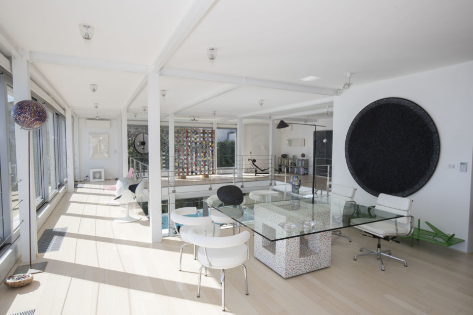 Njegov prostrani dom ispunjen je poznatim klasicima produkt dizajna – Eamesovim i Corbusierovim stolcima, ali i njegovim vlastitim kreacijama, poput stola u dnevnom boravku i trpezariji.