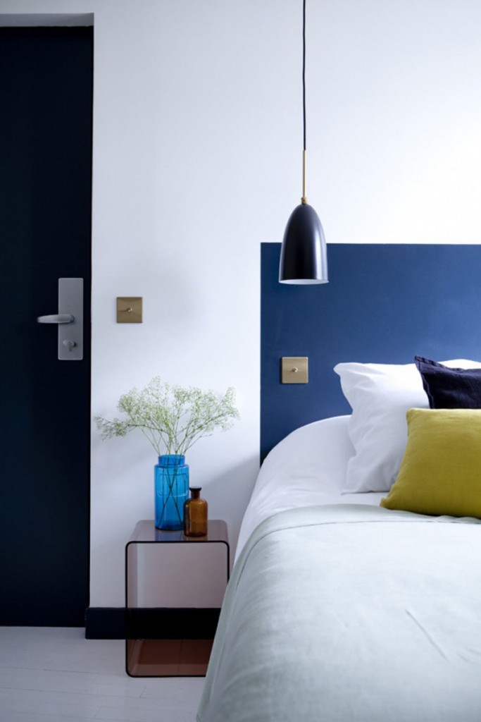 Zašto ne biste, jednostavno, obojili prostor koji bi zauzimalo uzglavlje, nekom efektnom bojom koja se uklapa u dominatni kolorit spavaće sobe. Jeftino je, jednostavno, i ako vam se u krajnjem slučaju ne svidi – prefarbajte ga. Takođe, prave, geometrijske linije pomažu u stvaranju modernog ambijenta.