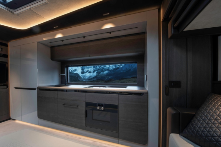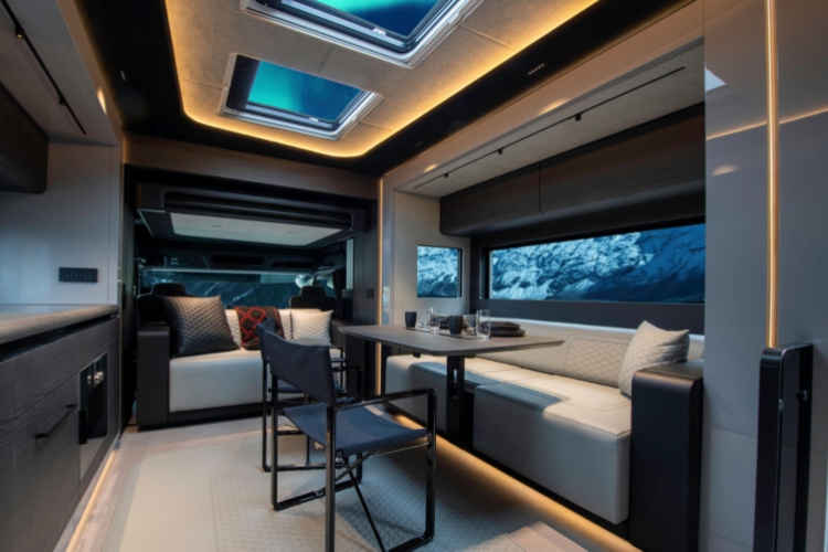 Iako luksuzan, ovaj kamper nije izgubio ni trunku performansi. Pokreće ga 12.8-litarski šestocilindrični turbo-dizel motor sa 530 konjskih snaga i 2.600 Nm obrtnog momenta – dovoljno da bez napora nosi sve što vam treba za pokretni životni stil.