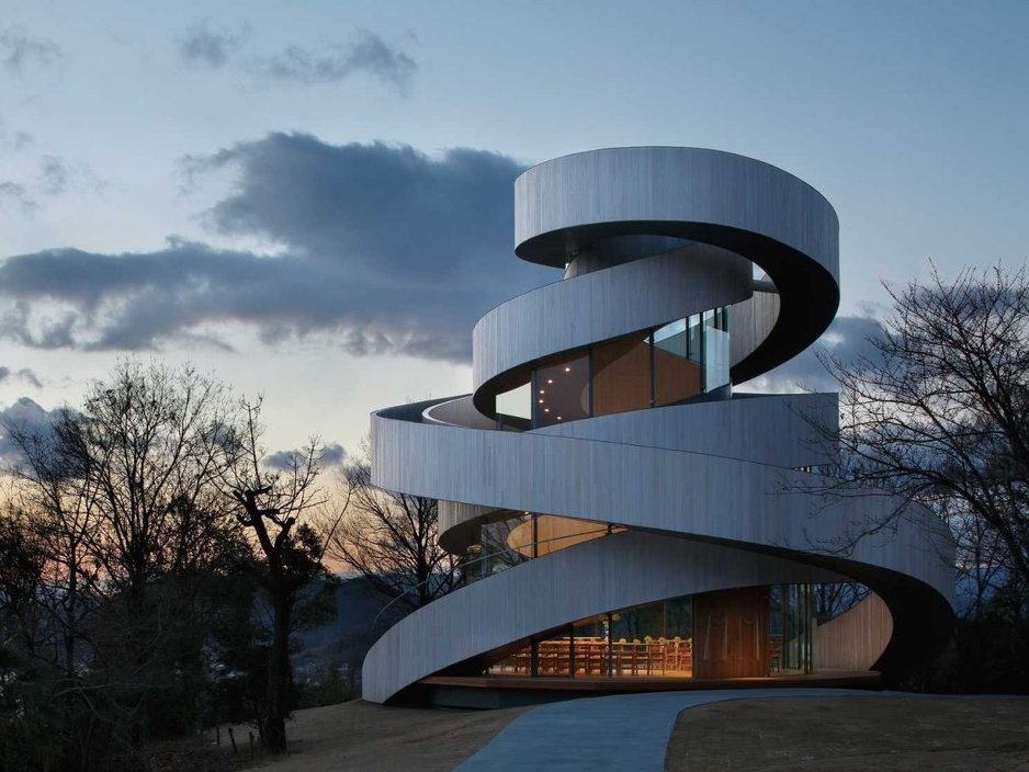 Vikendicu trokutastog profila arhitekta opisuje kao kućicu na drvetu za odrasle. Nagnuta fasada dobija funkciju zida za penjanje uz pomoć užeta koje povezuje vrh krova sa tlom. Uspon ima tri razine koje pružaju očaravajući pogled na okolnu prirodu.