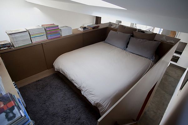 Napravio je moderan stan sa dnevnom sobom sa radnim dijelom, kupatilom, kuhinjom, a čak je napravio i galeriju na koju je smjestio spavaći dio. Kako prostor nije veliki uredio ga je minimalistički koristeći se raznim trikovima za maksimalno iskorištavanje prostora.