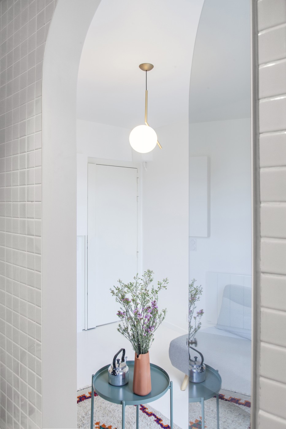 Uređenje ovag kosmopolitskog apartmana inspirisano je Marokom i Grčkom, iako to ne biste rekli na prvi pogled. Na drugi, prijetićete polukružne lukove na zidovima i detalje u plavoj boji koja neodoljivo podsjeća na Santorini.
