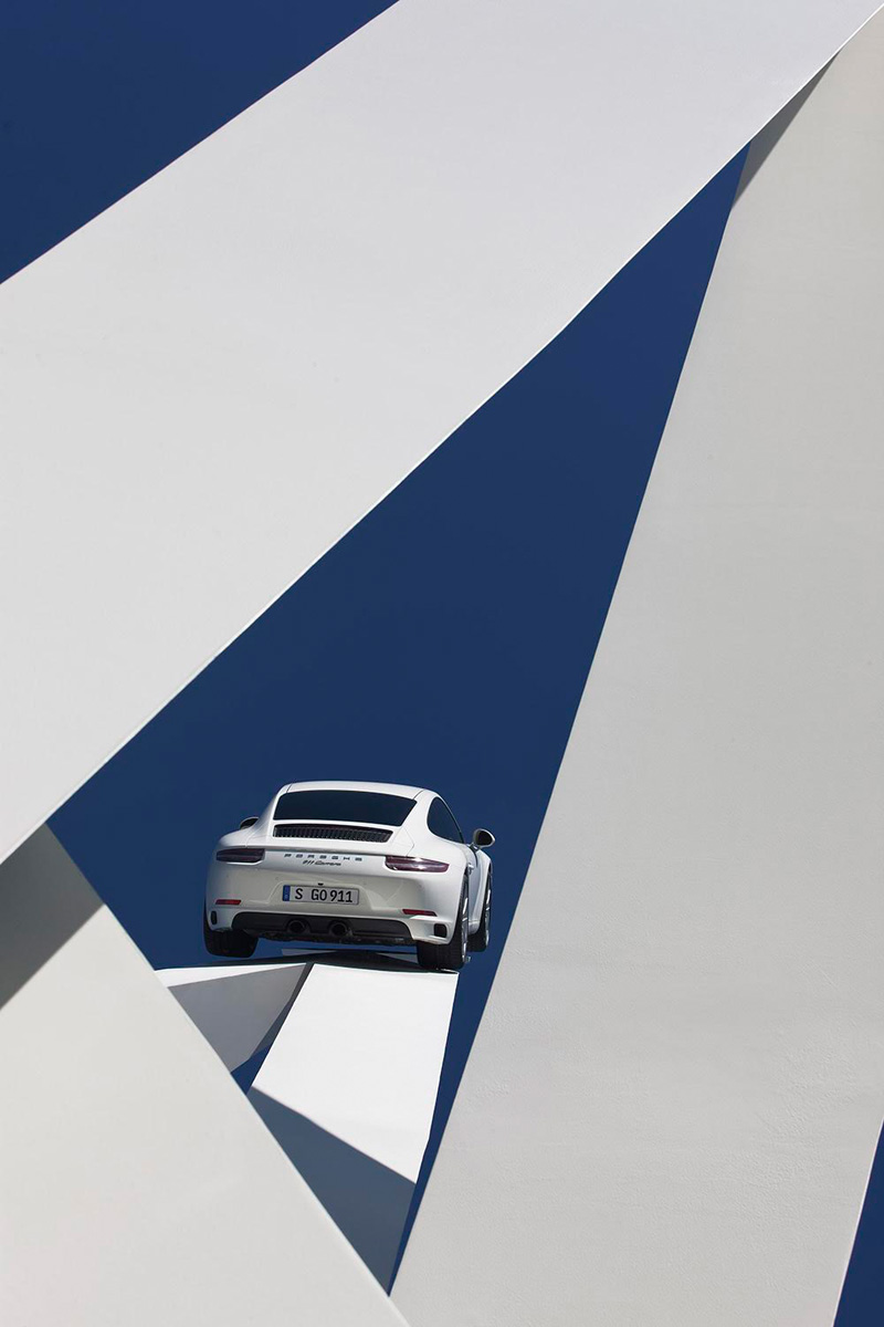 Skulptura visoka 25 metara ima tri prava automobila – potpuno novu 911 Carreru okruženu modelima 911 SC Coupe i 911 2.2 Coupé klasik. Prije nego što je postavljena ispred muzeja, skulptura je izrađena u Veliko Britaniji a djelo je umjetnika Gerry Judaha.