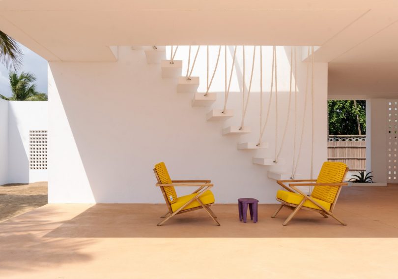 Smještena u tropskom ambijentu punom palmi, kuća održava visoko minimalistički dizajn, kako bi se uklopila i uskladila sa cijelim ljetnim osjećajem i mirom koji vlada u cijelom mjestu. Osim linearnog, ali istovremeno apstraktnog oblika, odabrani su i vrlo neutralni tonovi, lagani i izrazito ljetni, što upotpunjuje cijeli koncept dizajna.